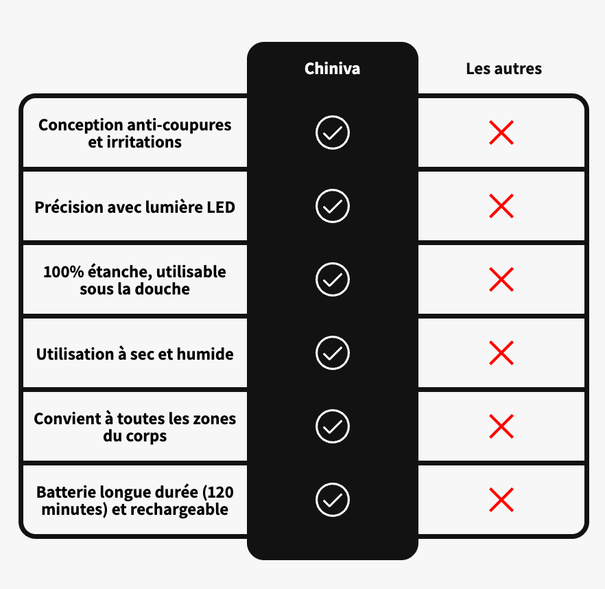 Avec notre rasoir, chaque partie de votre corps profite d’un soin délicat et précis.